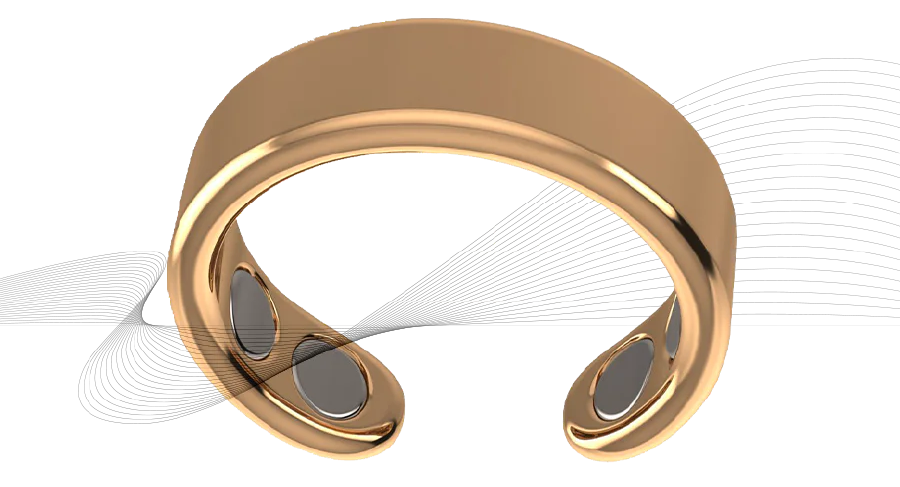 טבעת Calmi משלבת 4 מגנטים מובנים, הפועלים במגע רציף עם האצבע לאורך היום.